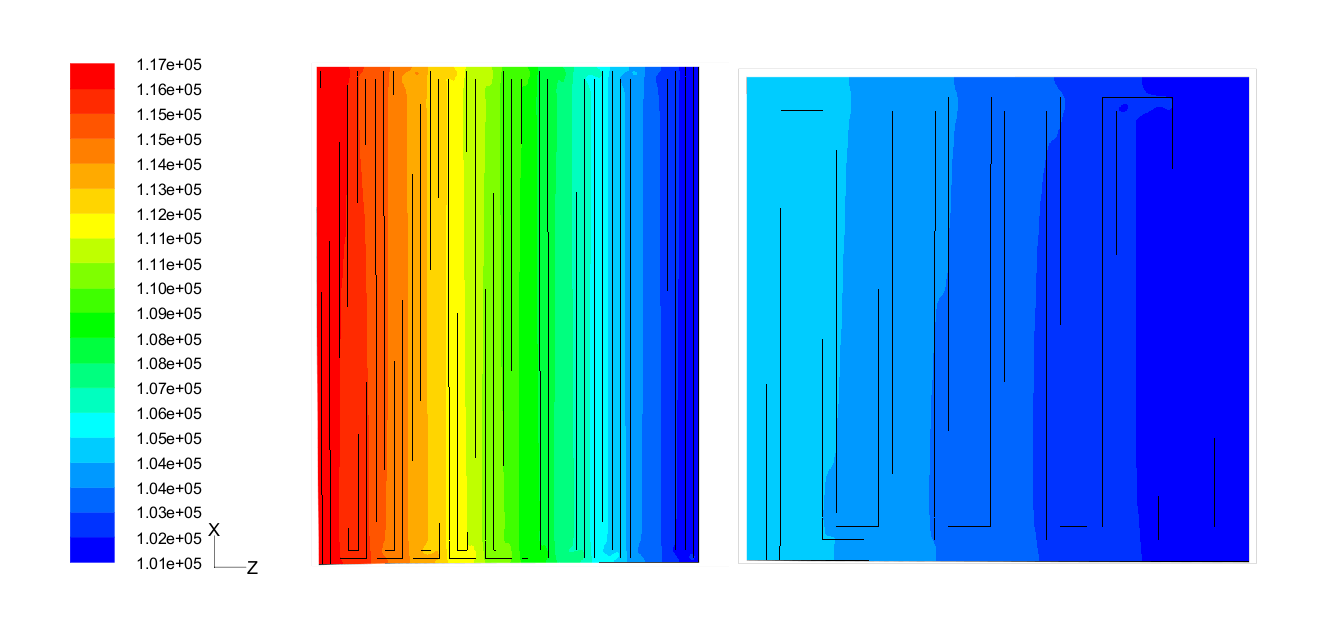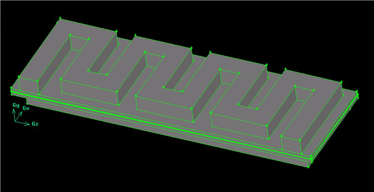 A hydrogen fuel cell is divided into 7 layers which include bi-polar plates, gas diffusion layers, membrane, and catalyst layers. This research focuses on optimizing the parameters that describe the serpentine channel configuration for the highest power output. The important parameters are channel width, height, and length, rib width, and gas diffusion layer thickness. Varying the dimensions for these parameters creates different pressure distributions within the cell, which results in varied power outputs from the cell. Figure1 shows an example of a fuel cell model with the serpenine channel configuration.
